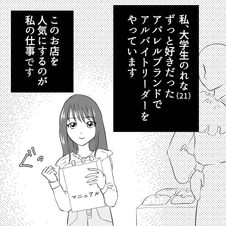 アパレルショップでアルバイトリーダーを務める主人公は、新人のアルバイトの子を育成することになりましたが……。