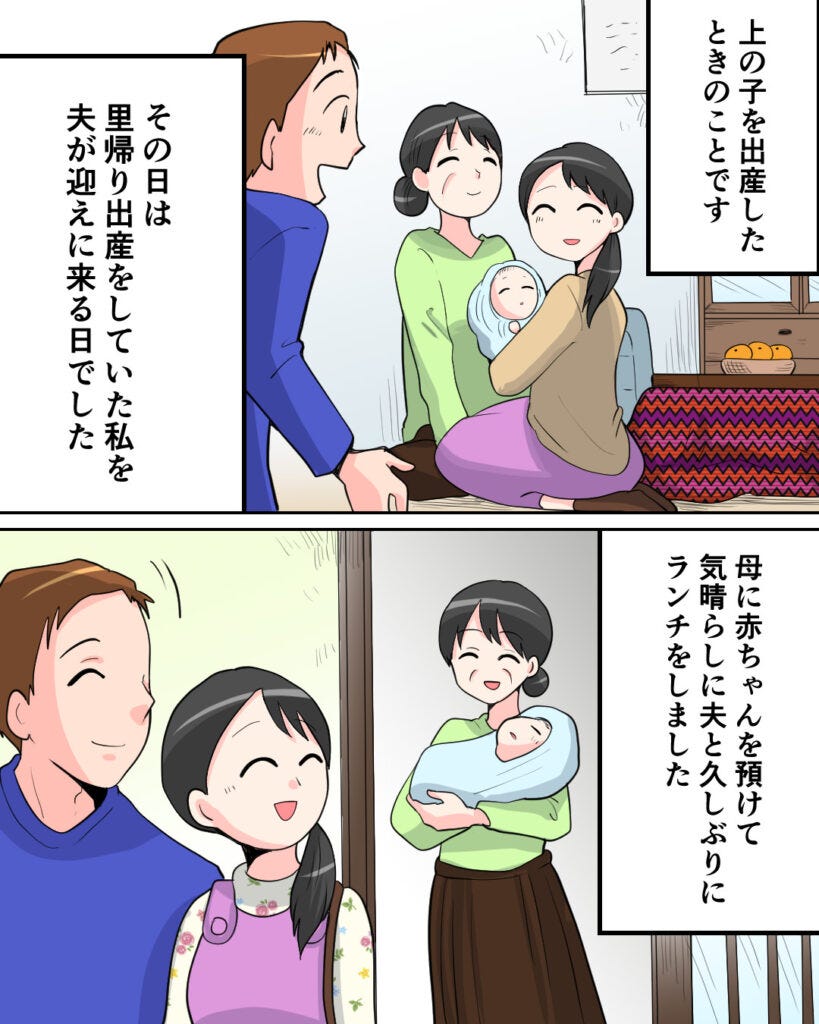 今回は、里帰り最終日に起きたハプニングエピソードを漫画で紹介します。