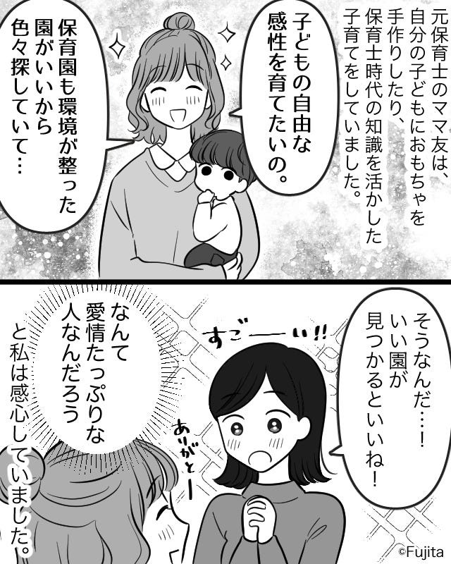 ママ友に悪気はなかったのかもしれませんが、主人公は驚いてしまったようです。