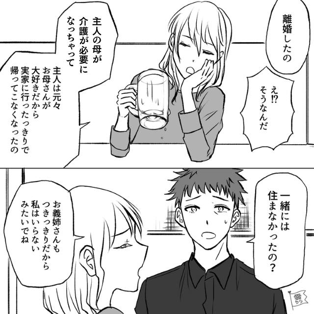 - 女友達「主人の母が“要介護”になっちゃって…」数年ぶりに呼び出されて再会したら…“身の上相談”が始まった!?→真意がわからず不安が募る…!