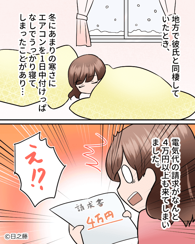 今回は、電気代に驚いたエピソードを漫画で紹介します。