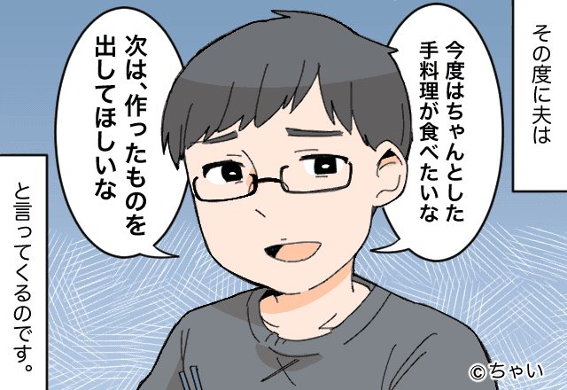 自分で作ることをせず、忙しい妻に手料理を食べたいと言う夫。