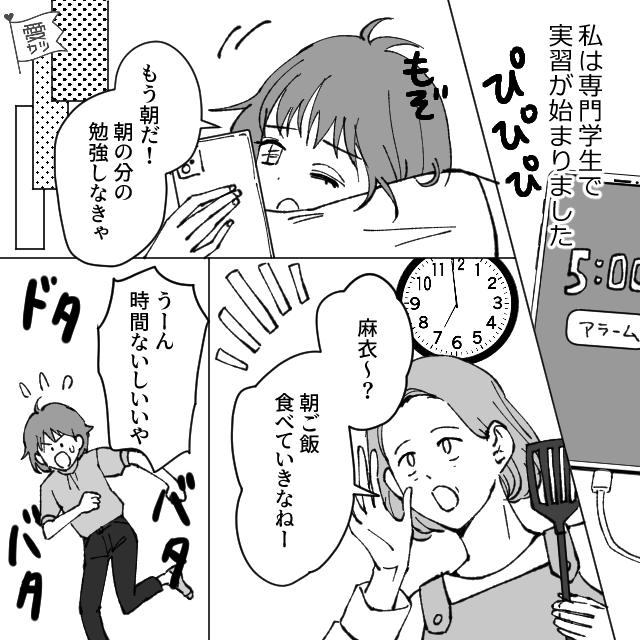専門学校に通う主人公は、実習が始まって毎日大忙しなのですが…。