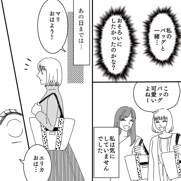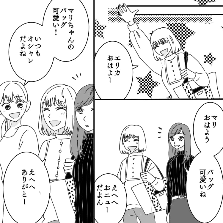 おしゃれが好きで友だちからも、よく着ている服やバッグをほめられていた主人公。