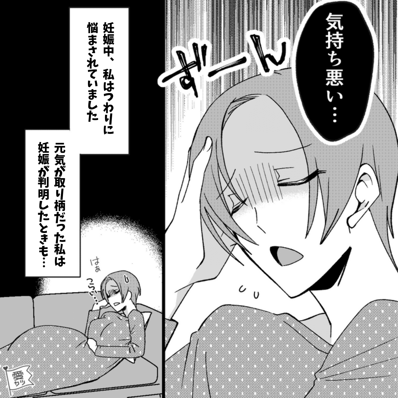 妊娠中の重いつわりで、体調がすぐれなかった主人公。