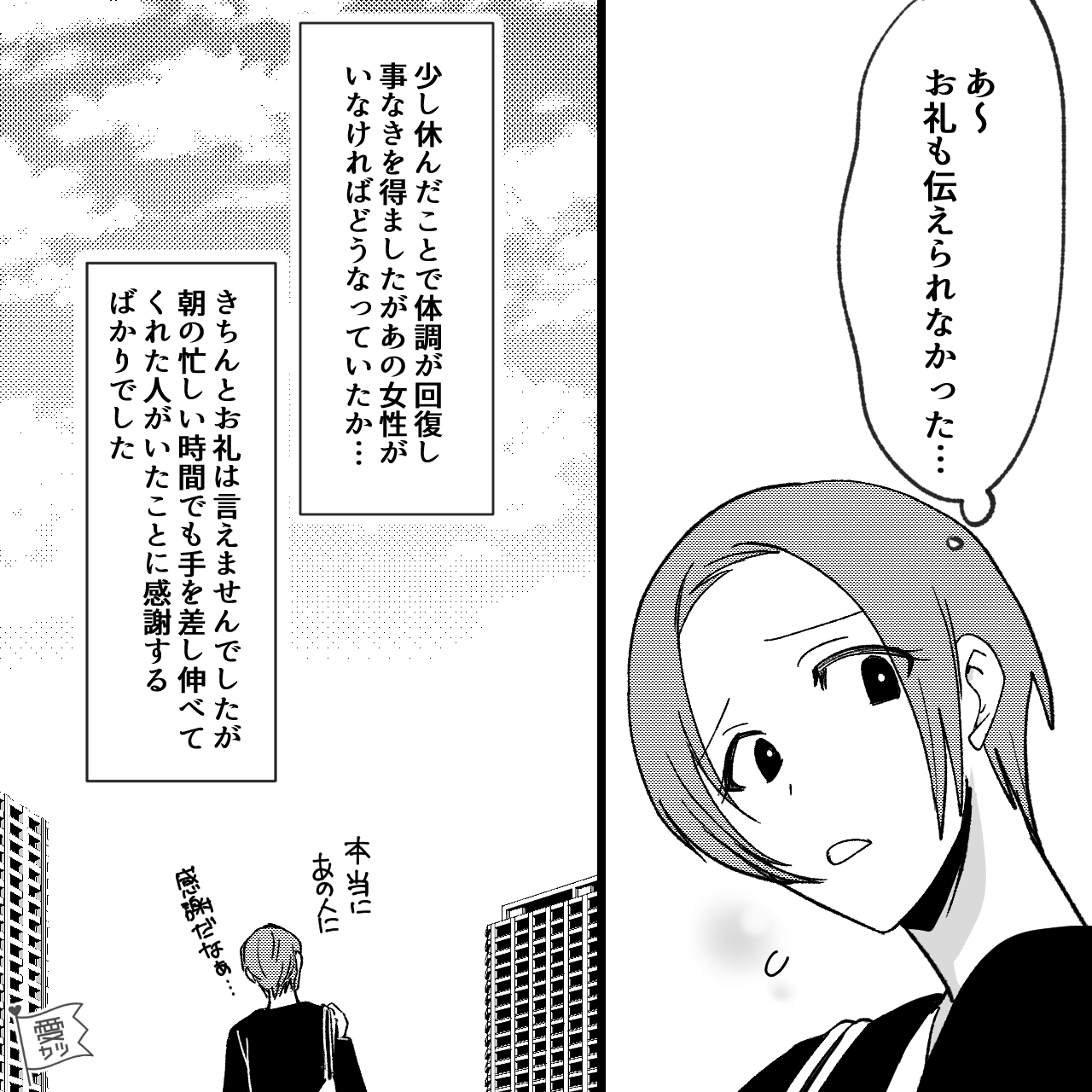 通勤ラッシュの忙しいときに、親切な女性が声をかけてくれました。