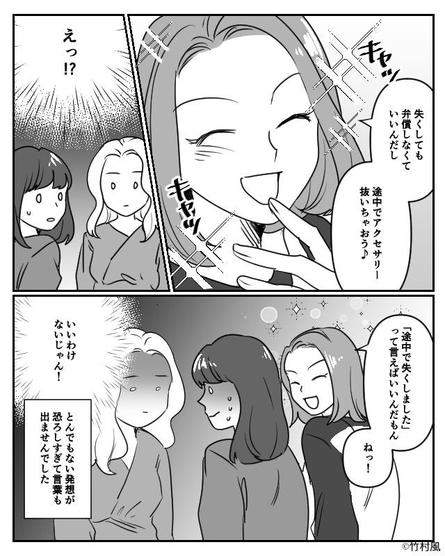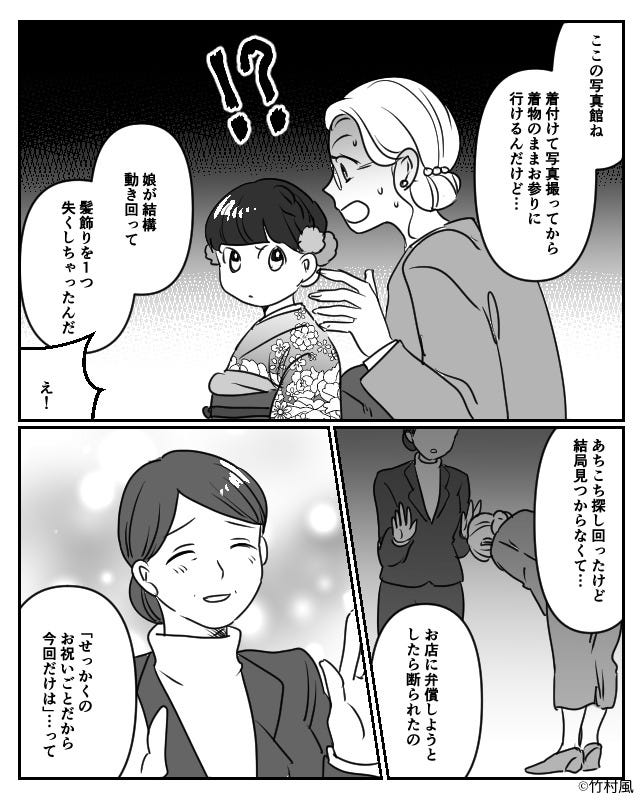 失くしたと言って、写真館のアクセサリーを盗もうとしているママ友。