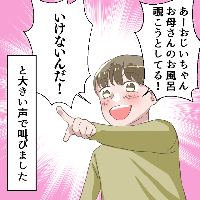 義父に向かって「いけないんだー!」と大声で叫ぶ息子。