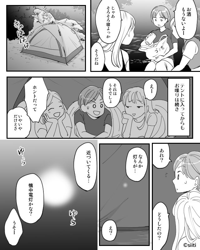 今回は、キャンプ中のゾワッとエピソードを漫画で紹介します。