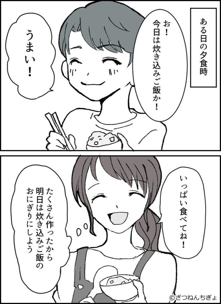 ある日の夕食は炊き込みご飯だったので…。