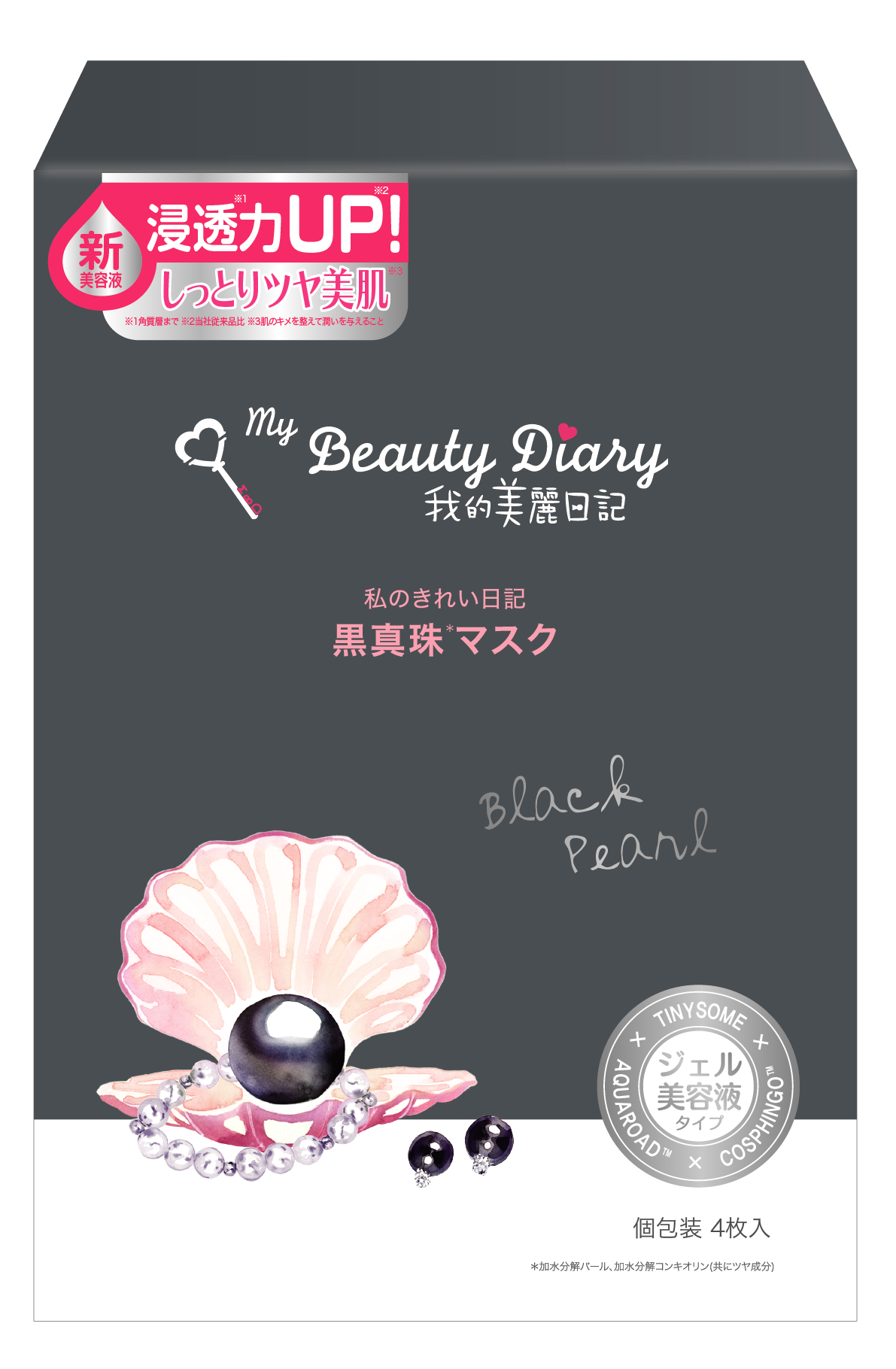 タヒチ産の高品質な真珠からとれたWエキス(加水分解パール、加水分解コンキオリン(共にツヤ成分))を配合。お肌に必要なビタミン・ミネラル及びアミノ酸が豊富に含まれており、疲れたお肌にハリ・ツヤを与え、化粧ノリを良くします。今まで20~30分だったお手入れが10分で完了。また、シートは天然パルプ100%の植物繊維から出来ています。ウォータージェット製法で綿密に織った、極薄シートにたっぷり美容液が含まれており、お肌に吸い付くように密着します。肌に優しく負担をかけないように、パラベン、アルコール、鉱物油、色素、蛍光剤などは一切使用していません。