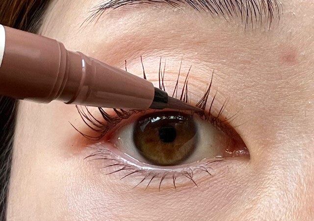 ポイントは、まつげの生え際を埋めるように細く引くことです。