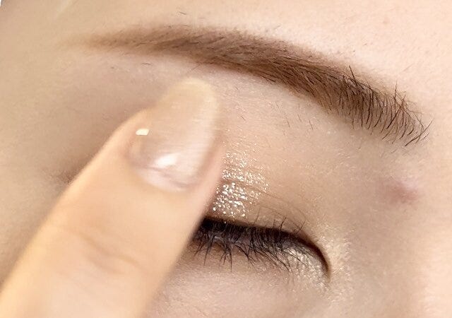 どうしても大粒ラメのアイシャドウを使いたい!という方は、「まぶた中央」「下まぶたキワ中央」に馴染ませるのがおすすめです。