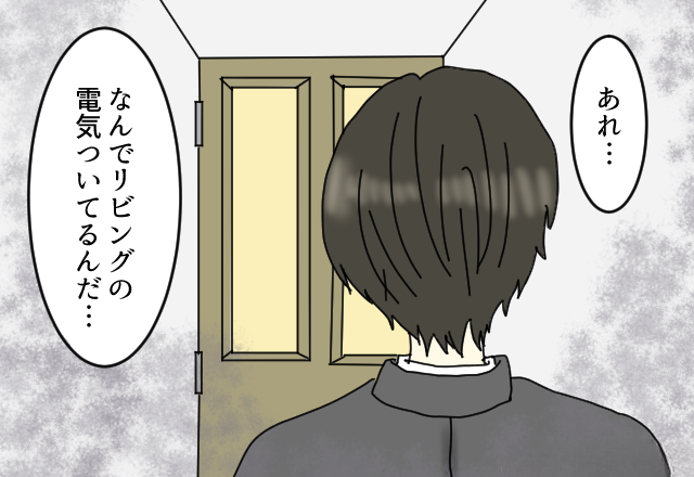 仕事から帰宅するとリビングの電気がついていて不思議に思った主人公。