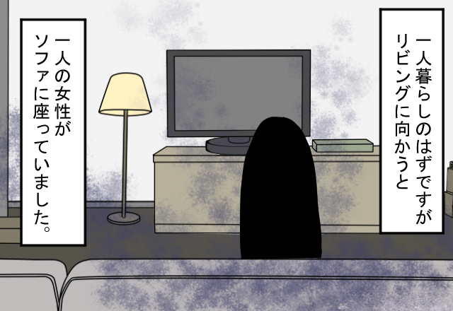 一人暮らしのはずですが、リビングに向かうとソファーに女性が座っていたのです。