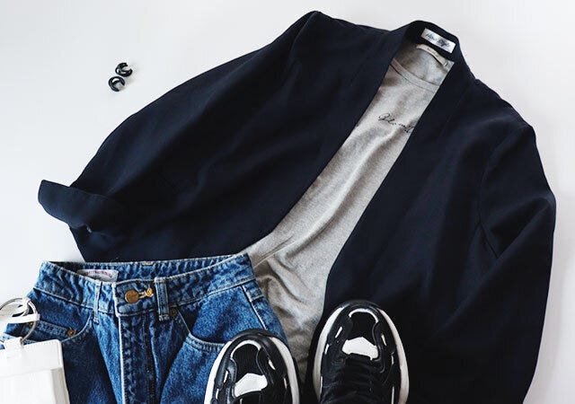 ジャケットやデニムと併せてきれいめなカジュアルスタイルに。まだ温暖差が激しい季節だからこそ、上着で調整できるコーデが便利です。