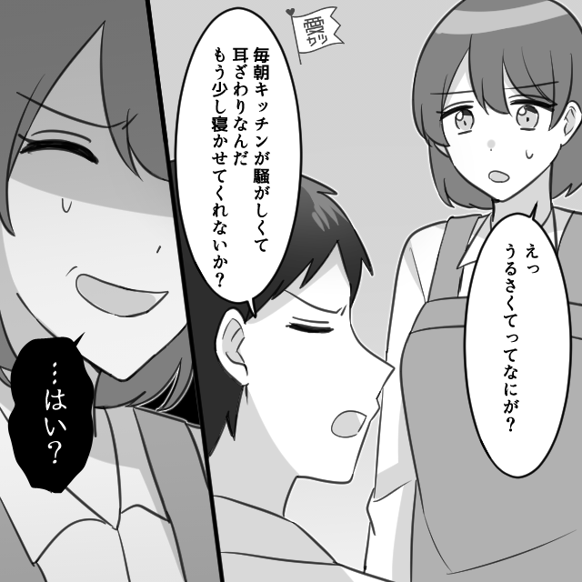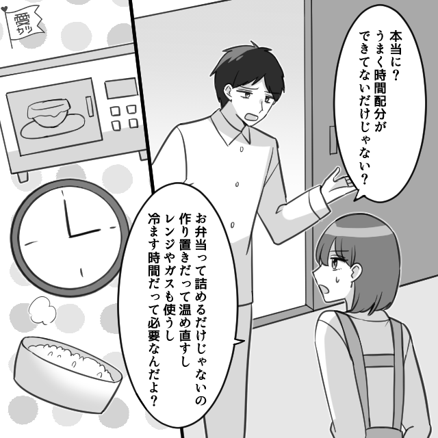 お弁当を作っていると、夫から文句を言われてしまった主人公。