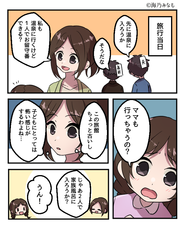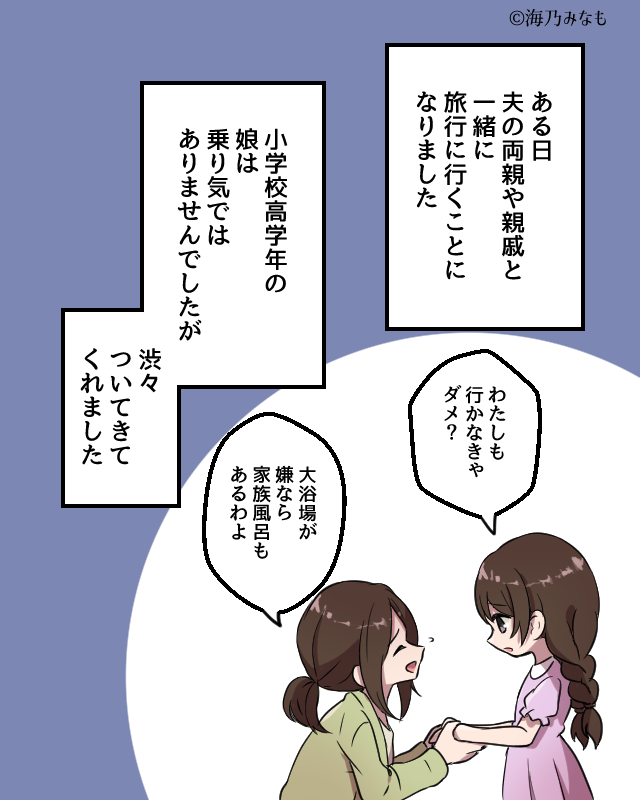 大浴場を嫌がる娘と家族風呂に入っていた主人公。