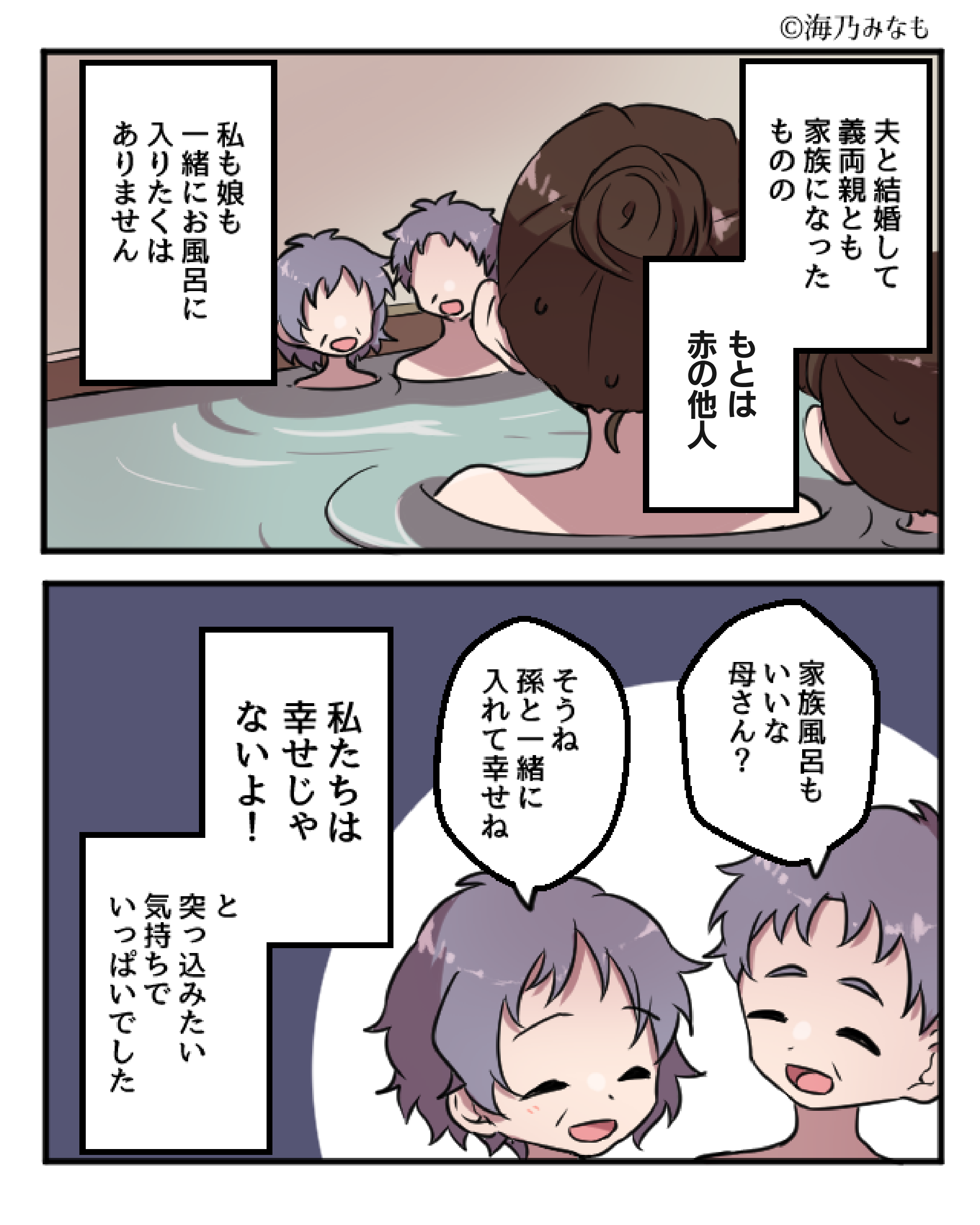 そこに義両親が入ってきてしまい、ゆっくりできなかったようです。