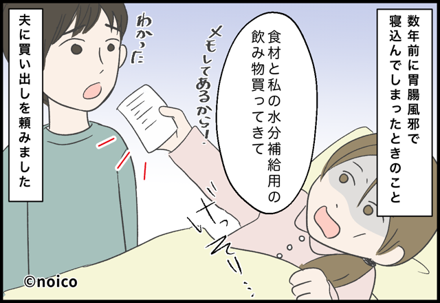 主人公が風邪で寝込んでいても、まったく頼りにならなかった夫。