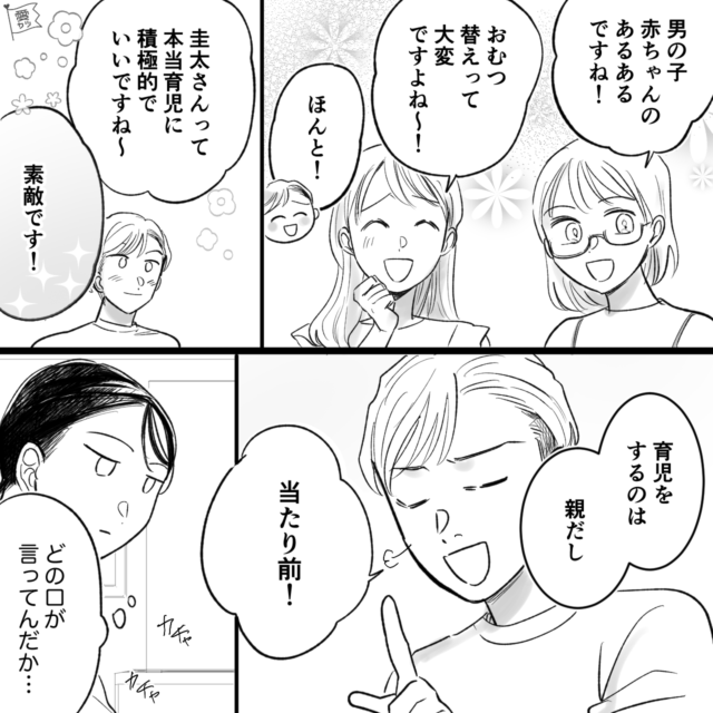 育児をしていないことがママ友たちに露呈した夫なのでした。
