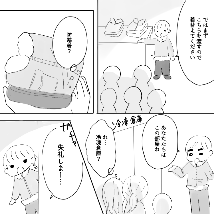 現場の扉を開けると、たくさんの人が極寒のなかで働いていました。