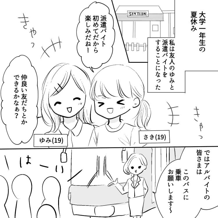 主人公は、友人のゆみは派遣バイトをすることになりました。