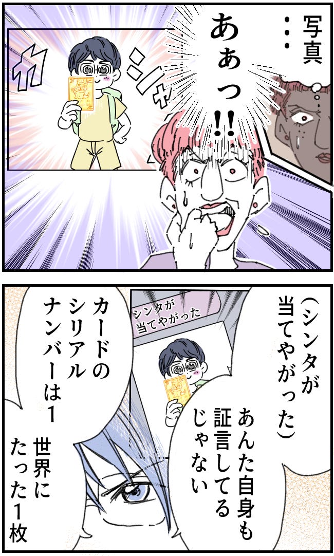 正解は「送った写真にトレーディングカードのシリアルナンバーが写っていたから」でした。