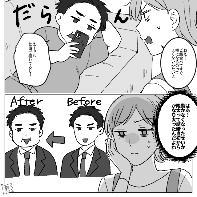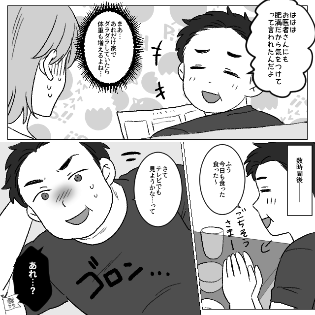 結婚当初は痩せていた夫が、家で動かないせいでだんだんと太ってしまいました。