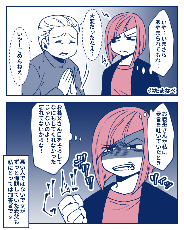 絶縁後、義父との交流は再開したようですが、当時のことを思い出すとモヤモヤしてしまうでしょう…。