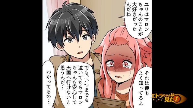 ペットロスはとてもつらいので、主人公の気持ちがよくわかります。 しかし、近くに支えてくれる彼氏がいてくれて、一緒に前を向いてくれるのはとても素敵だと思いました。 (30代/女性)主人公が落ち込んでいるときに、そばで支えて励ましてくれる彼氏にとても感動しました。 こんな彼氏となら、結婚してからずっと幸せでいられるだろうなと思います。 (20代/女性)※本文中の画像は投稿主様より掲載許諾をいただいています。