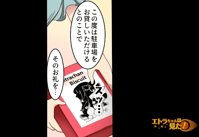 女性が「駐車場のお礼です」と言うので、主人公は「なんの話ですか?」と驚いてしまいます。