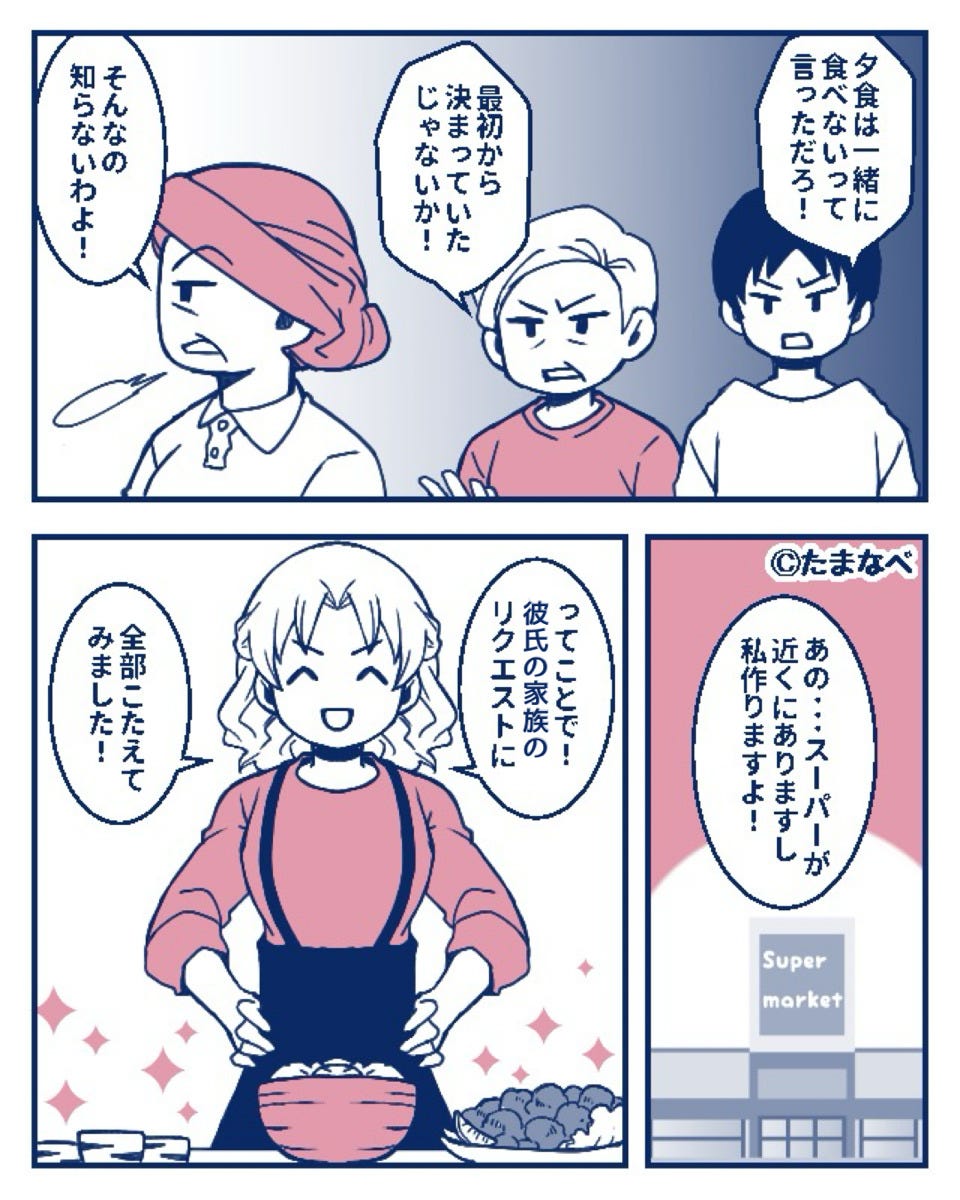 二度と彼氏の母のために料理をしたくないと思った主人公なのでした。