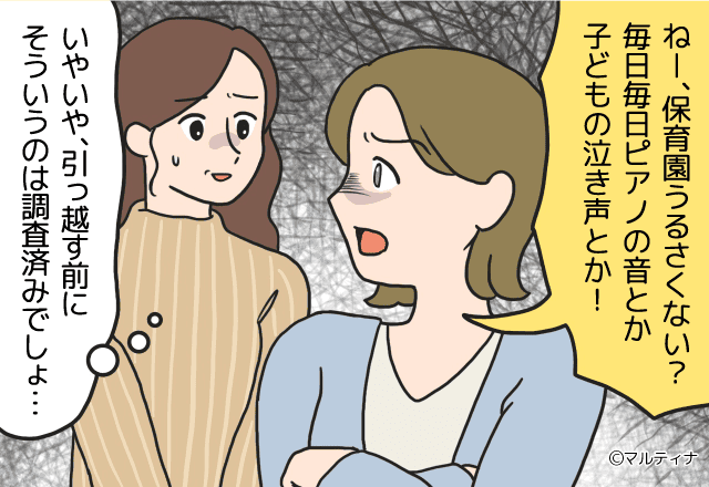 近所にある保育園から聞こえる音がうるさいと言うママ友。