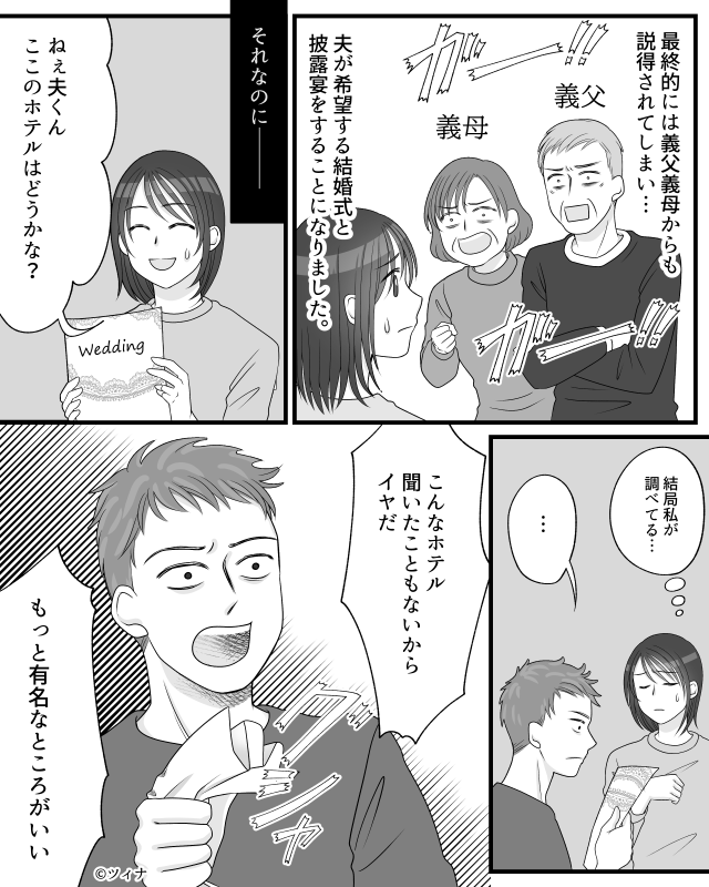 「結婚式をやりたい」と言ったにもかかわらず、主人公に準備を任せ、嘘までついた夫。