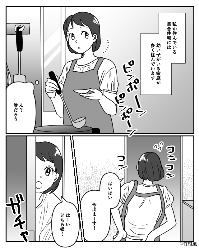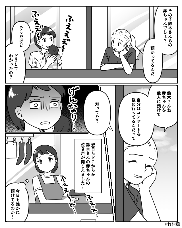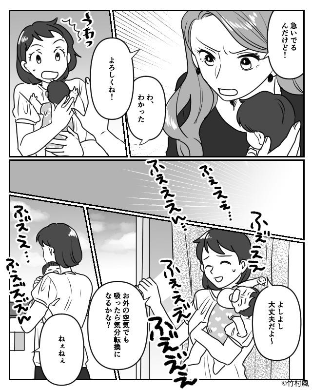 突然、同じ集合住宅に住むママ友から子守りを任された主人公ですが…。