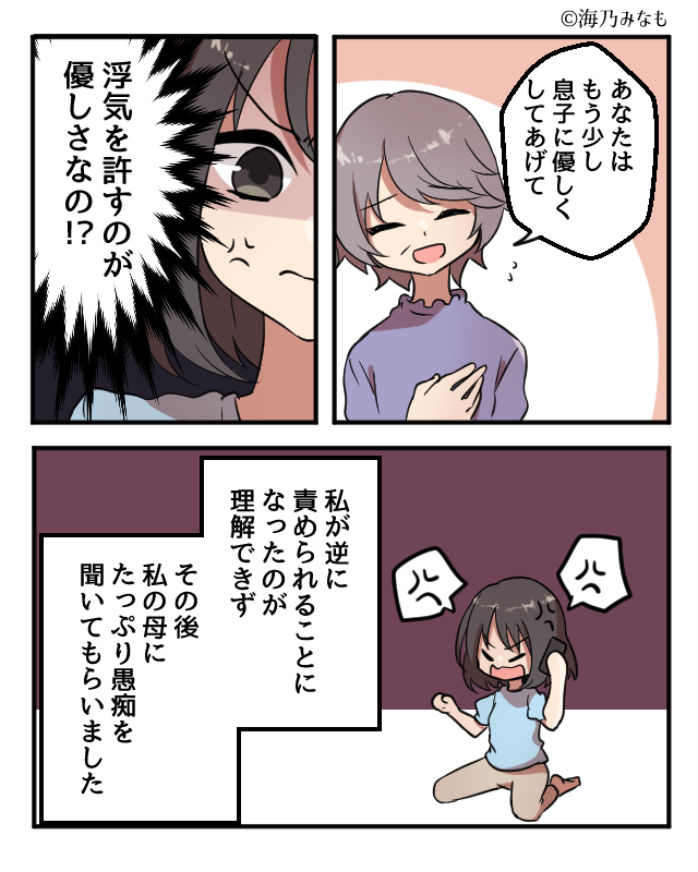 夫を責めない義母の発言には驚いてしまいますよね。