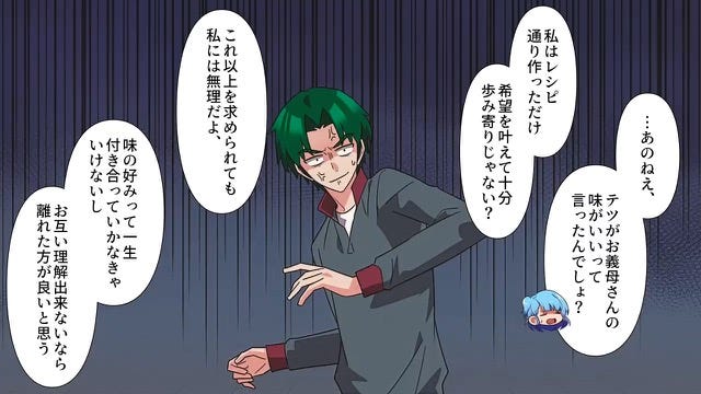 その後、教わったレシピ通りに料理をしたものの、夫がまた文句を言ってきたので主人公は反論しました。