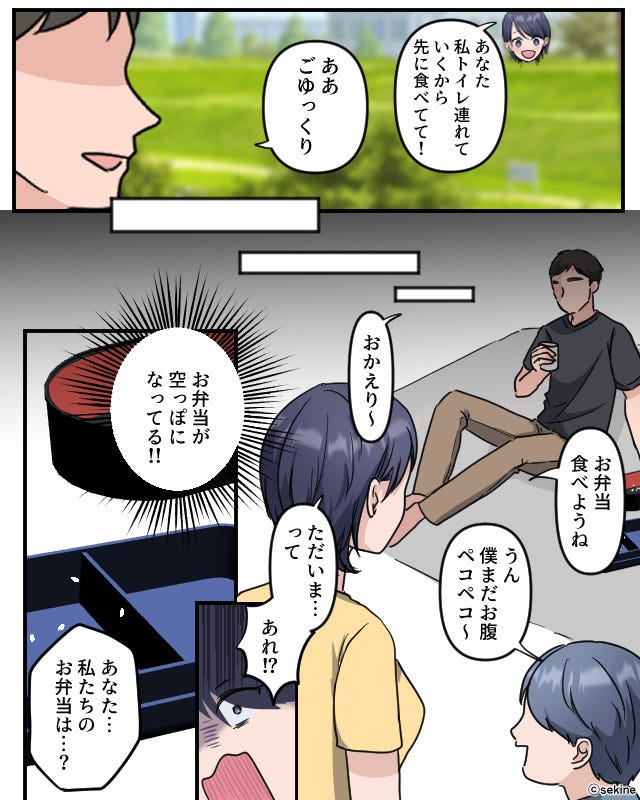 主人公たちの分まで、勝手にお弁当を食べてしまった夫。