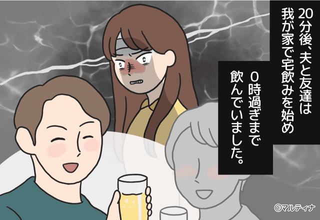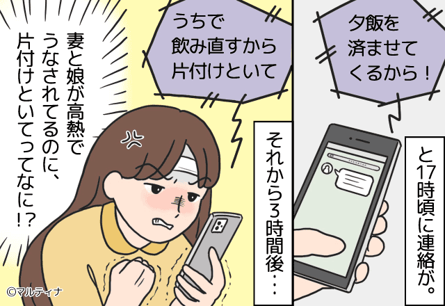 高熱にうなされている主人公たちがいるにもかかわらず、友達を自宅に連れてきた夫。