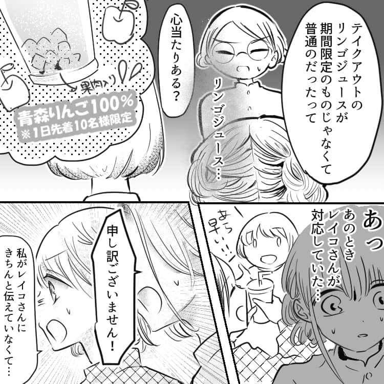 レイコさんの失敗をなすりつけられた主人公。思わぬ出来事に驚きを隠せません。