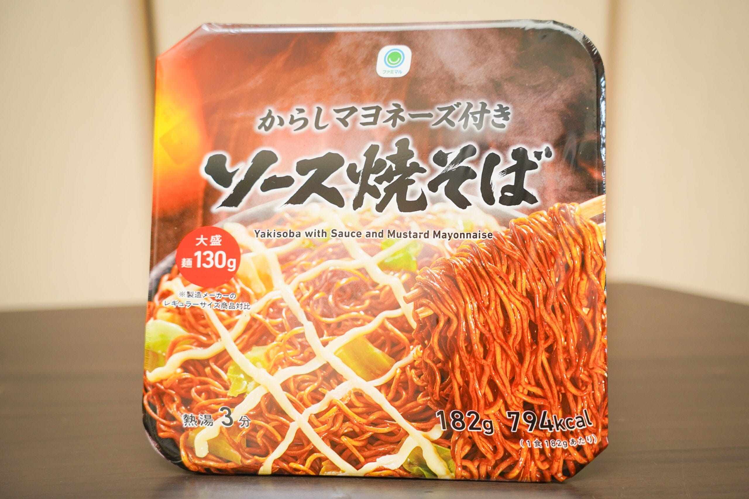 その他の商品も試して、個人的に気に入ったのは2位の『ソース焼そば からしマヨネーズ付き 大盛』。麺の量が130gと中々ボリューミーであり、マヨネーズも付属してなお価格が218円というのは嬉しいポイント。