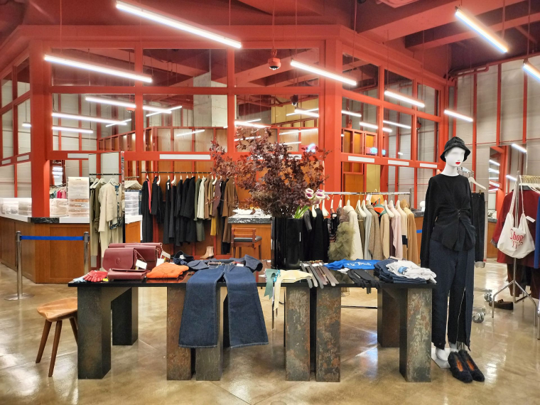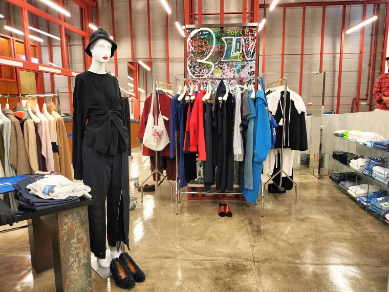 ユナイテッドアローズの「ロク」は11月11日、旗艦店を東京・青山に移転オープンした。「エイチ・ビューティ&ユース」がある建物の地下1階で、売り場は約165平方メートル。7月末に閉店した「渋谷キャットストリート店」より小さくなったが、上質なビンテージ商品や仕入れブランドを強化し、ファッションが好きな大人客に提案する。前身のレストランの内装の一部やテーブルカウンターを生かした。キャットストリート店で使っていたネオンの照明を随所に配置し、閉店を惜しむ寄せ書きのあるウィンドーを店内の太い柱に取り付けた。「0から新店舗を作るのではなく、歴史あるものと掛け合わせた空間に仕上げた」(吉田恵理子ディレクター)。