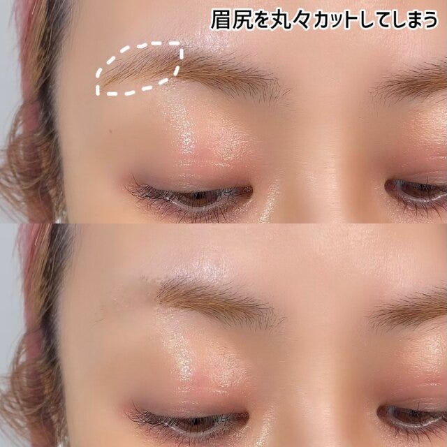 眉の毛をカットする時は眉の下をメインにして、目と眉の距離を縮めたい場合はアイメイクで縦幅を出して近づけて見せる方法がオススメです。