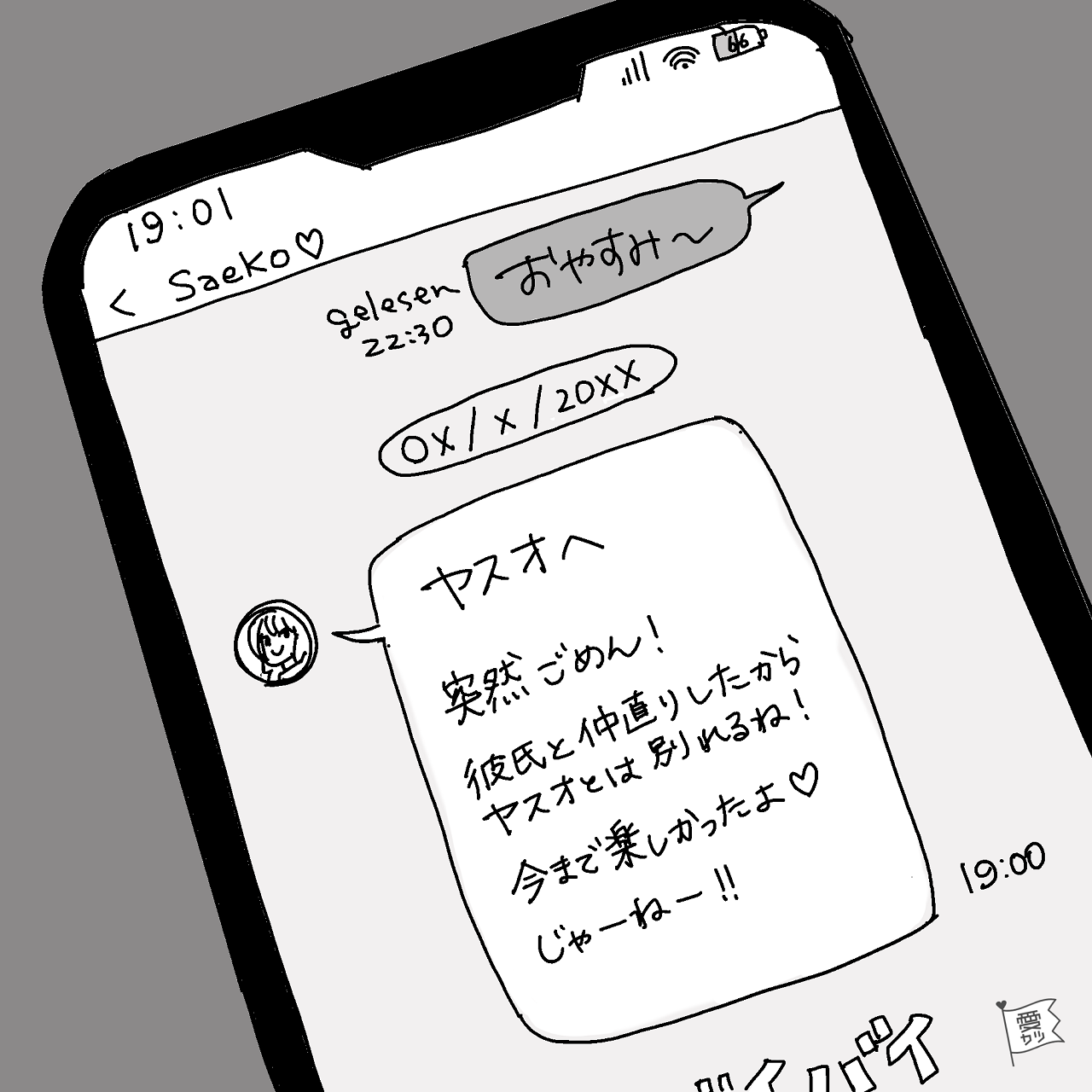 正解は「彼氏と仲直りしたからあなたと別れる」でした。