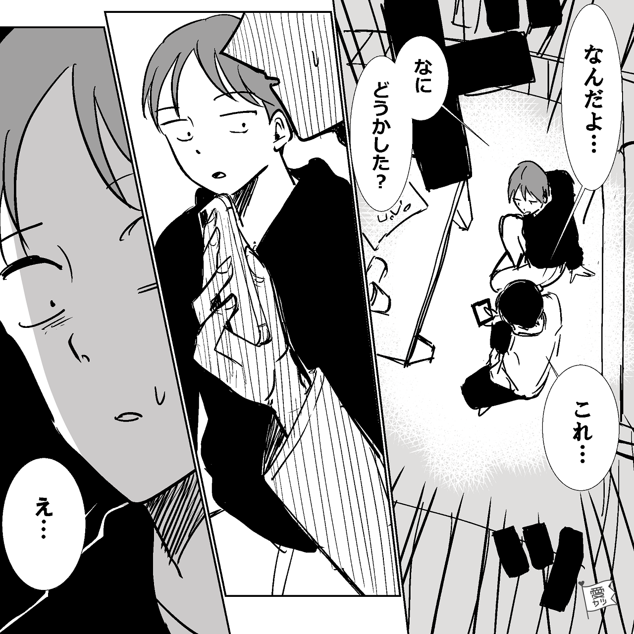 LINEを見た主人公の異変に気づいた友人は「どうかした?」と尋ねます。