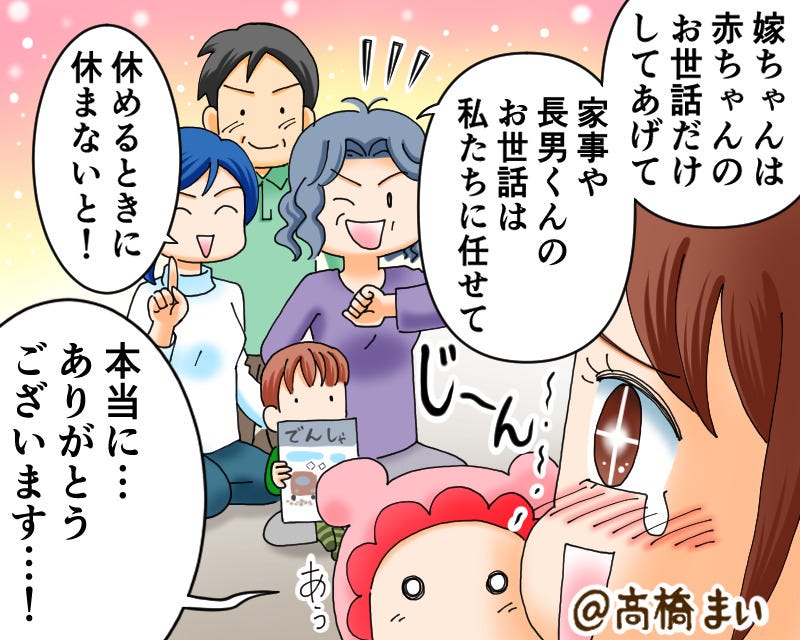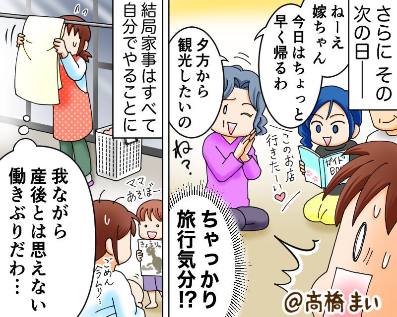 出産を終えた主人公のために、家事を手伝いに来てくれた義家族ですが…。