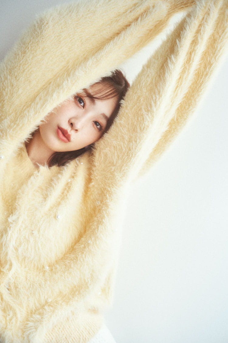 イエローパールシャギーカーディガン 15,400円/The Girls Society 白ショートパンツ 8,980円/épine イヤリング 5,940円/アビステ 撮影/藤原宏(Pygmy Company・モデル)、上田祐輝(静物) スタイリング/稲葉有理奈(KIND) ヘア&メイク/菅長ふみ モデル/髙橋ひかる(本誌専属) 文/小田和希子、天井玖瑠海