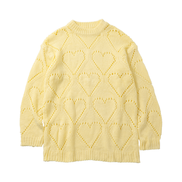 透かして出現する大きなハート柄の甘~い演出♡ イエローならキュートすぎず、カジュアルにも使える。