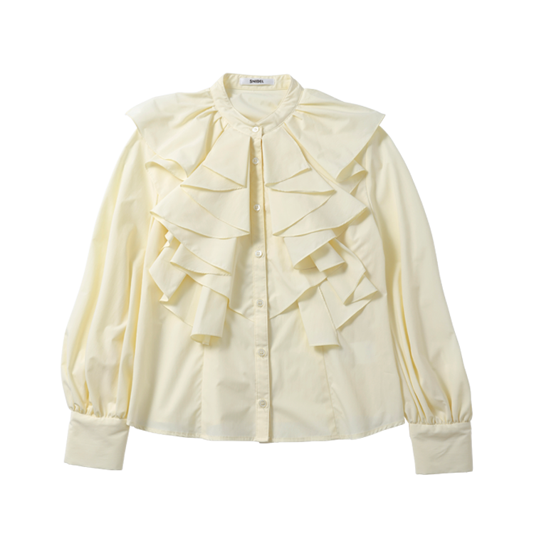 輝きのあるイエローで上品オーラが加速中。フリルで顔まわりが華やかな印象に♡